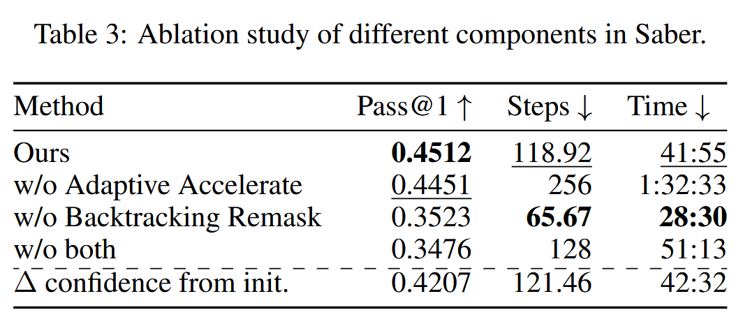 Saber:一种针对扩散语言模型的自适应加速与回溯增强的高效采样方法#