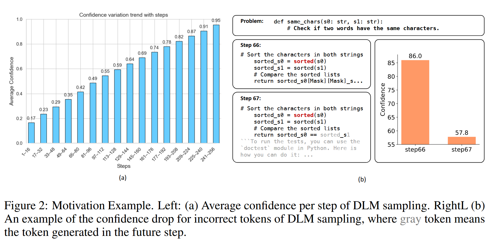 图 a 表明,DLM 生成过程难度逐渐降低。